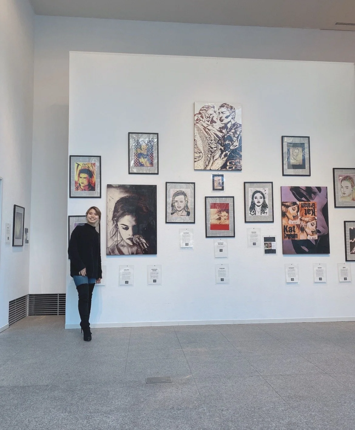 After experiencing social withdrawal during high school, she began engaging with art independently as a place of refuge. This period became the foundation of her practice. The exhibition presented a series of works inspired by public figures who have lived with disability or prejudice, rendered through a pop art–influenced approach. It marked the beginning of her ongoing exploration of “the strength to live.”